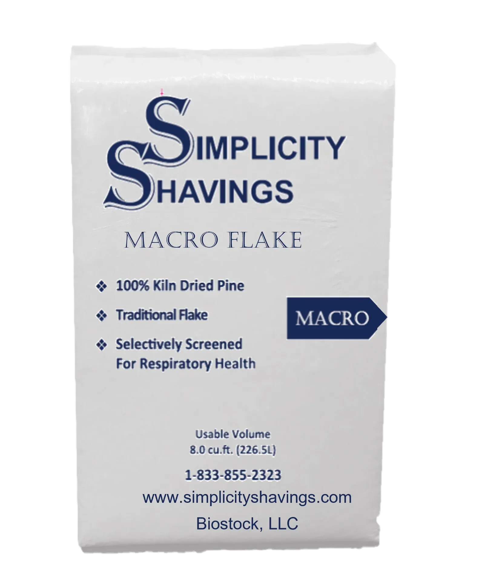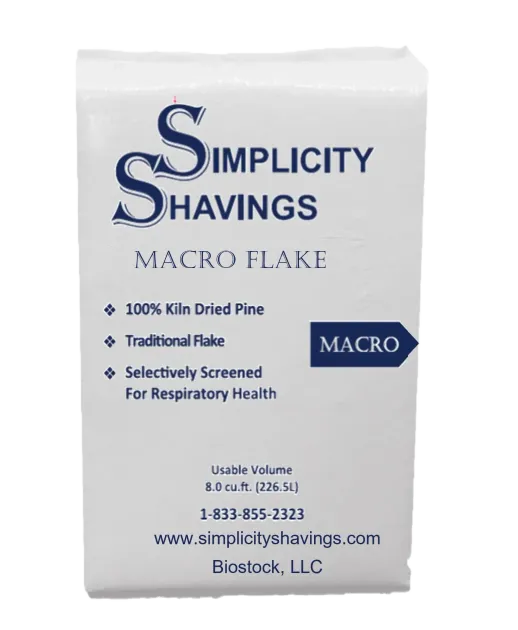 Simplicity Macro Flake is a high-volume horse bedding that is a low dust, multi-screened medium flake.